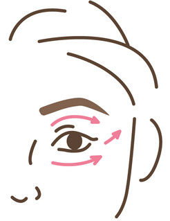 Проводи скребком от внутреннего уголка глаза в сторону и немного вверх. Не старайся выполнять упражнение на скорость и проявлять максимальное усилие. Наоборот, двигайся в спокойном темпе и с умеренным нажатием.
