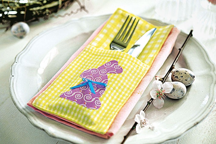 ЧЕХОЛ ДЛЯ ПРИБОРОВ. Для создания этого полезного и стильного элемента сервировки рекомендуем использовать термонаклейки – продаются в магазинах рукоделия.