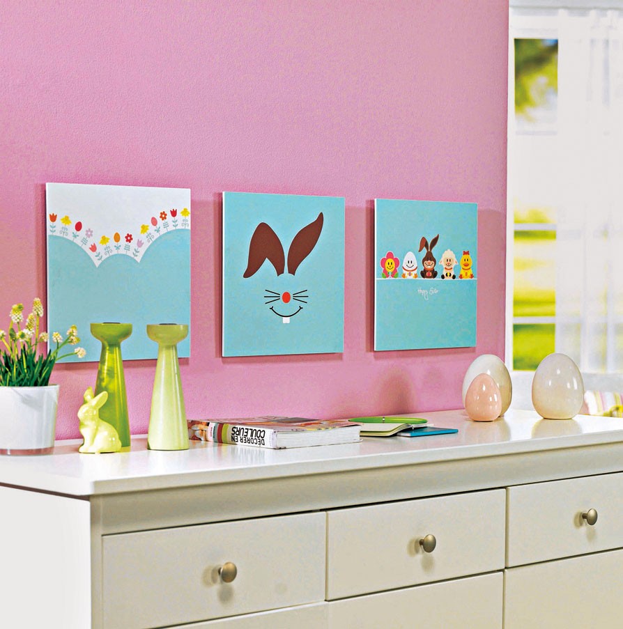КАРТИННАЯ ГАЛЕРЕЯ. Выдели в доме одну стену для сменной экспозиции и меняй ее в зависимости от событий. Так, на Пасху там будут весьма кстати тематические детские рисунки, постеры с кроликами, ретро-открытки и т.д.