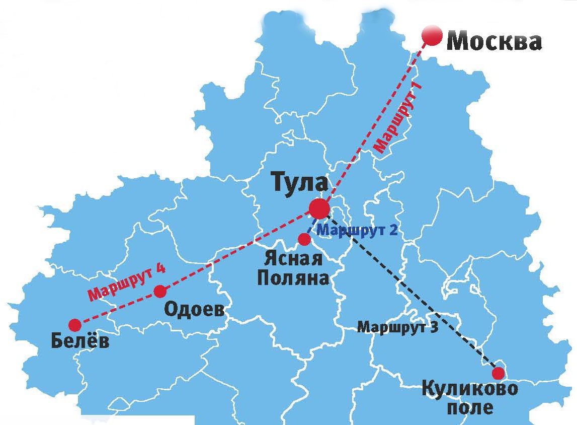До Тулы из Москвы можно доехать на скоростной электричке «Ласточка». Идет ок. 2 часов.