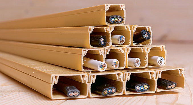 Подойдет для любых видов кабелей. Удобно использовать, если не хочется портить ремонт и штробить стены, а кабели нужно спрятать. Пластиковые короба идеальны для маскировки висящих на стене проводов. Они недорогие и благодаря лаконичному дизайну не бросаются в глаза. Чтобы короб был менее заметным, подбирай его в тон стен. Конструкция закрепляется на стене, внутрь укладывается провод, сверху надевается защитная крышка.