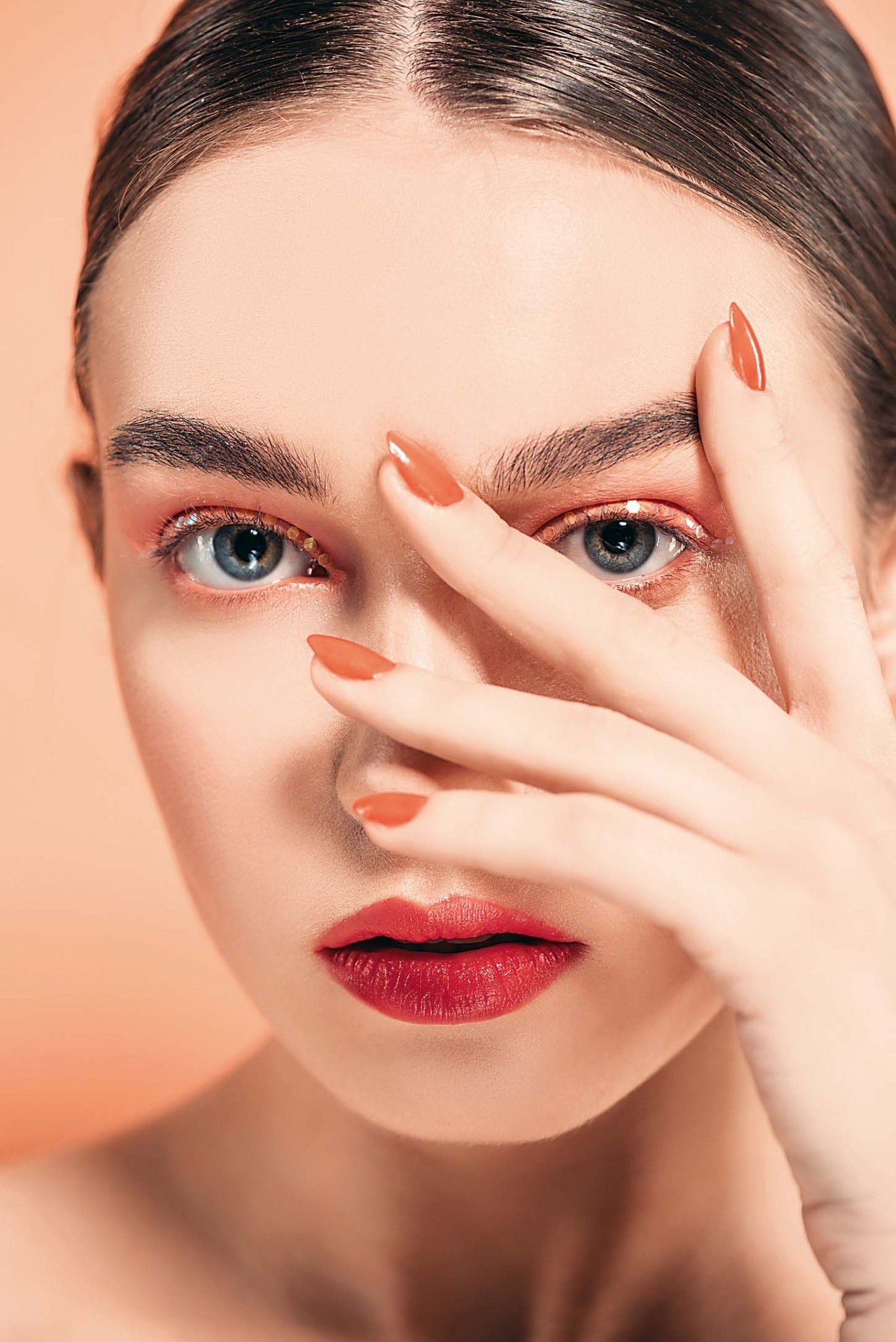 Дополни этим лаком моно-макияж в оранжево-персиковых тонах.