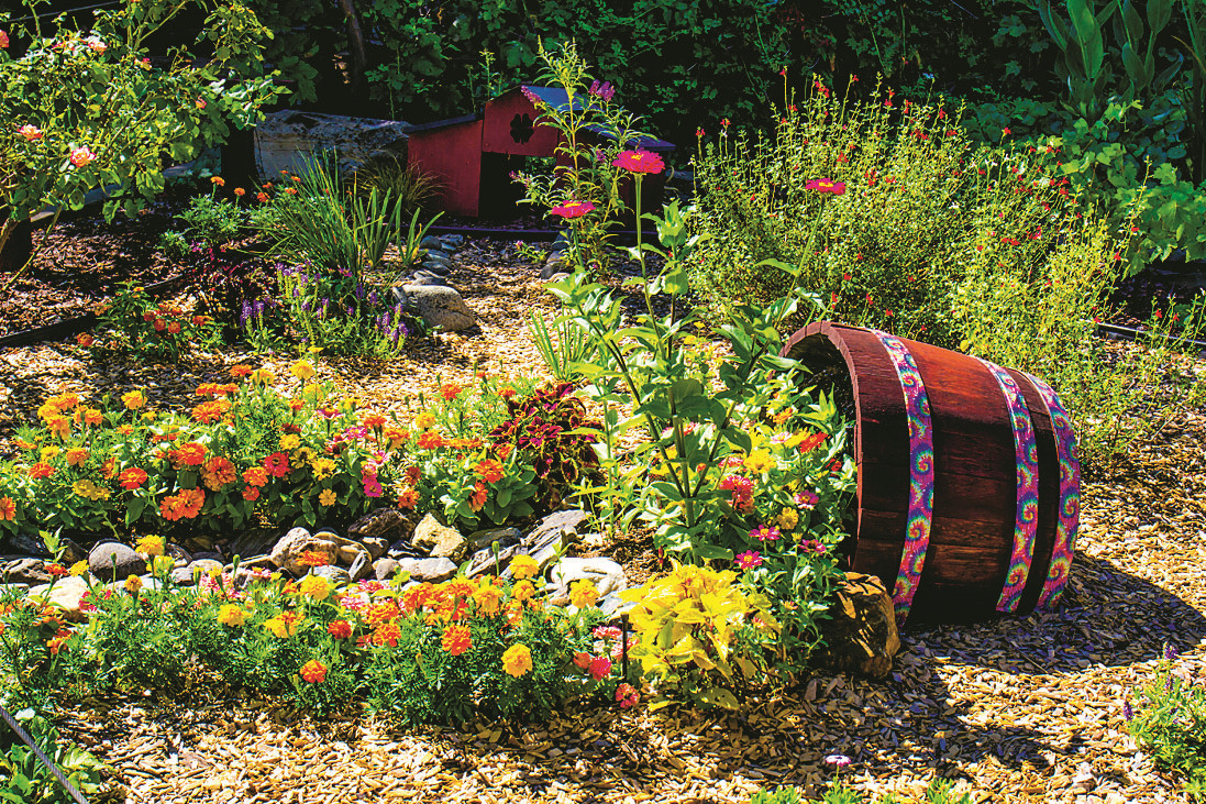 Если бочка герметичная и не пропускает воду, можно смастерить мини-прудик, декоративный, конечно. Налей в резервуар воды, засели водными растениями и поставь рядом с цветниками.