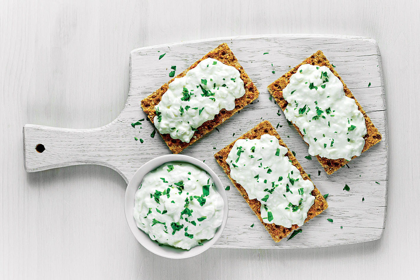 Приготовление. Брынзу нужно размять вилкой до пюреобразного состояния. Чеснок пропустить через давилку, зелень мелко-мелко нарезать, соединить с брынзой, перемешать, уложить в большой салатник и поставить в холодильник на пару часов.