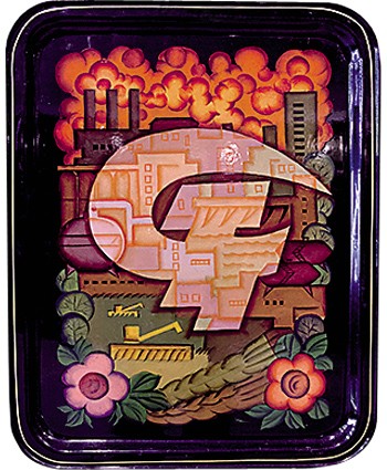 Следующий этап – заготовки грунтуют, покрывают эмалью в 2–3 слоя и отправляют в печь. После каждой просушки поднос шлифуют, ведь поверхность должна быть идеально гладкой, чтобы нанести фон и прозрачный лак. И вот поднос попадает к художникам...