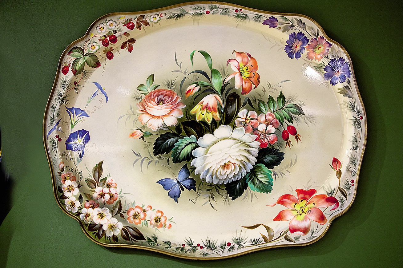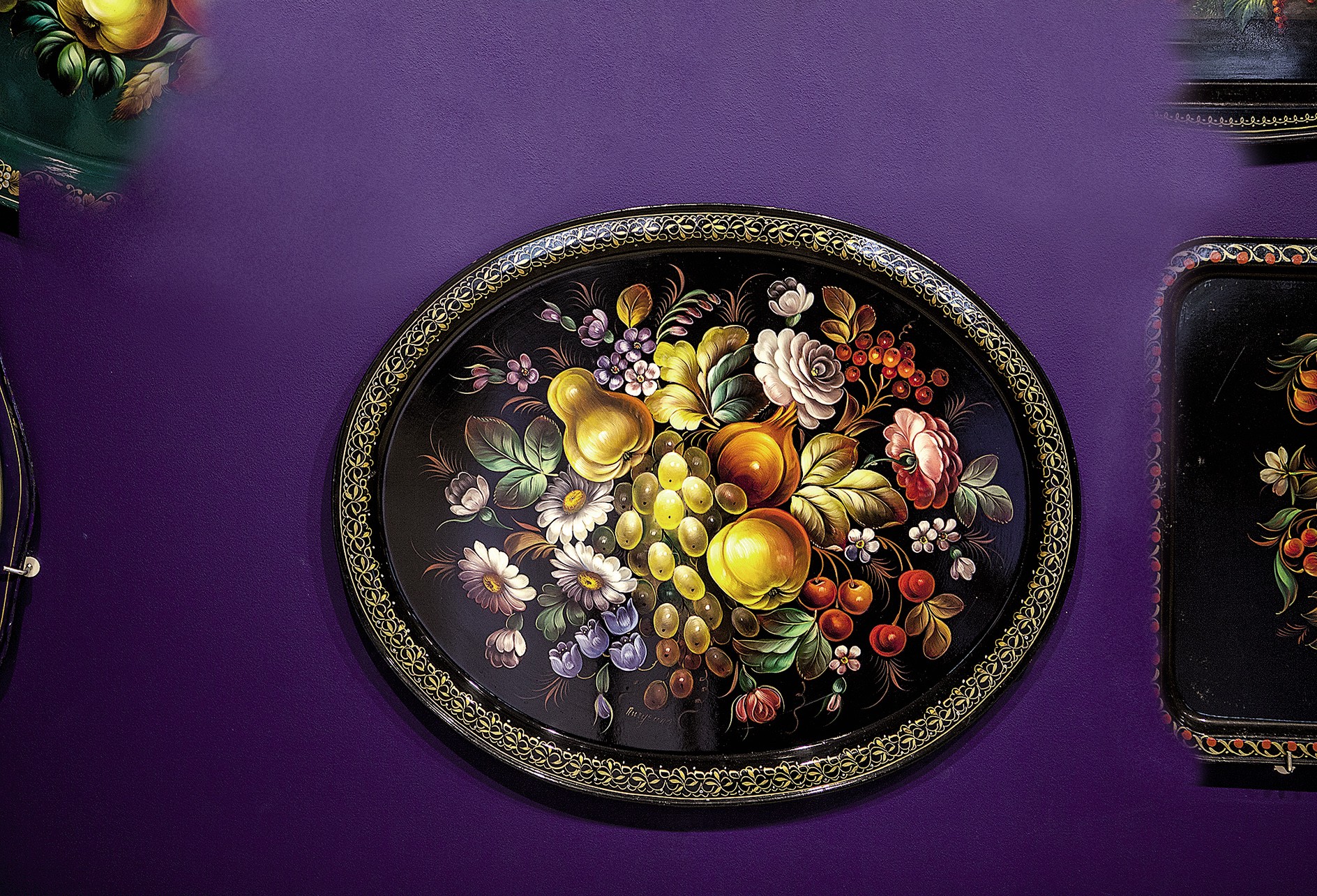Но в Жостово пишут не только фирменные цветы. В музее при фабрике можно увидеть сотни удивительных подносов различных стилей: русских красавиц в кокошниках, советскую символику и восточные орнаменты, натюрморты и исторические портреты. В коллекции есть даже поднос, расписанный известным художником Петром Петровичем Кончаловским.