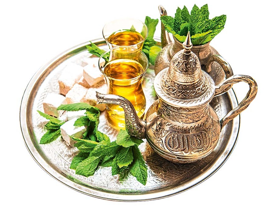 В Марокко пьют зеленый чай с большим количеством мяты и сахара. Такой напиток хорошо утоляет жажду. Но заваривать его, по традиции, должны мужчины. Женщинам это ответственное дело не доверяют.