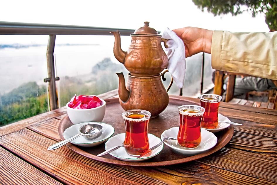 В Турции заваривают чай с помощью двухъярусного чайника чайданлыка. В нижний отсек заливают воду, в верхний кладут чайные листья и также вливают немного воды. Затем чайник ставят на огонь. Получается, чай как бы томится на водяной бане.