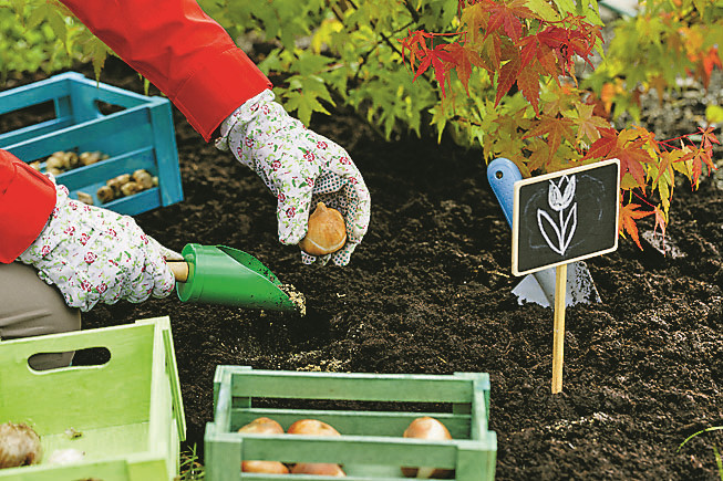 Тюльпаны, нарциссы, гиацинты, а также мускари, крокусы и другие ранние растения. Причем каждое – согласно точной инструкции на упаковке. Например, луковицы тюльпана, очень любимого россиянами цветка, нужно углублять в почву на 15 см. И не в хаотичном порядке, а согласно размеру (мелкие с краю, крупные – по центру) – соблюдение этого несложного правила обеспечит равномерные всходы. Еще совет: позаботься о грунте – добавь в него известь или золу.