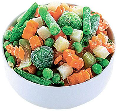Это самый быстрый и полезный гарнир или самостоятельное блюдо. При правильном хранении в замороженных овощах сохраняются все полезные вещества. Если овощи в пакете слиплись в комок, значит, они уже размораживались и были снова заморожены.