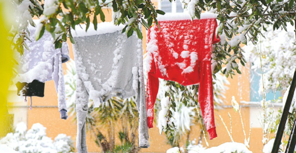 Процесс высыхания заметно ускорится, если на улице морозно. Повесь мокрые вещи на открытом балконе. Влага быстро «вымораживается» из ткани. Но в этом случае надо быть осторожной. Замерзший материал становится ломким, его легко можно повредить. После такой заморозки вещь нужно отнести в теплое помещение, дать ей оттаять и, при необходимости, досушить феном или утюгом.