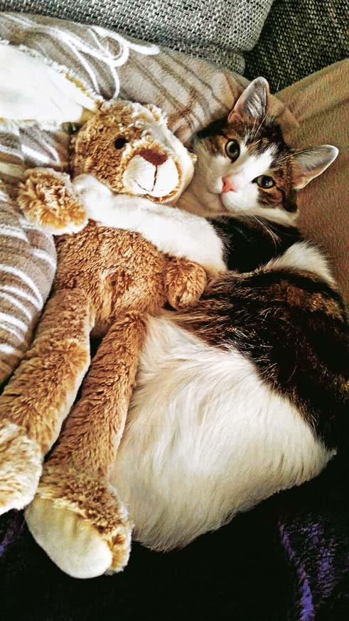 Барон, Санкт-Петербург. Любимый мягкий мишка достался котику по наследству от юного хозяина – благодарности нет предела.