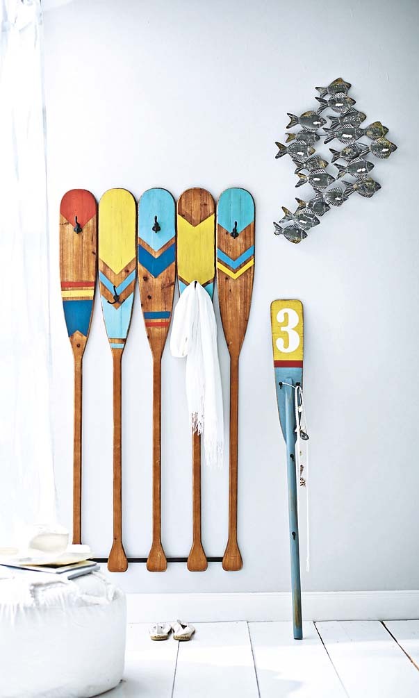 Покрась несколько изделий и закрепи на их основании крючки – стильный элемент декора для прихожей готов.