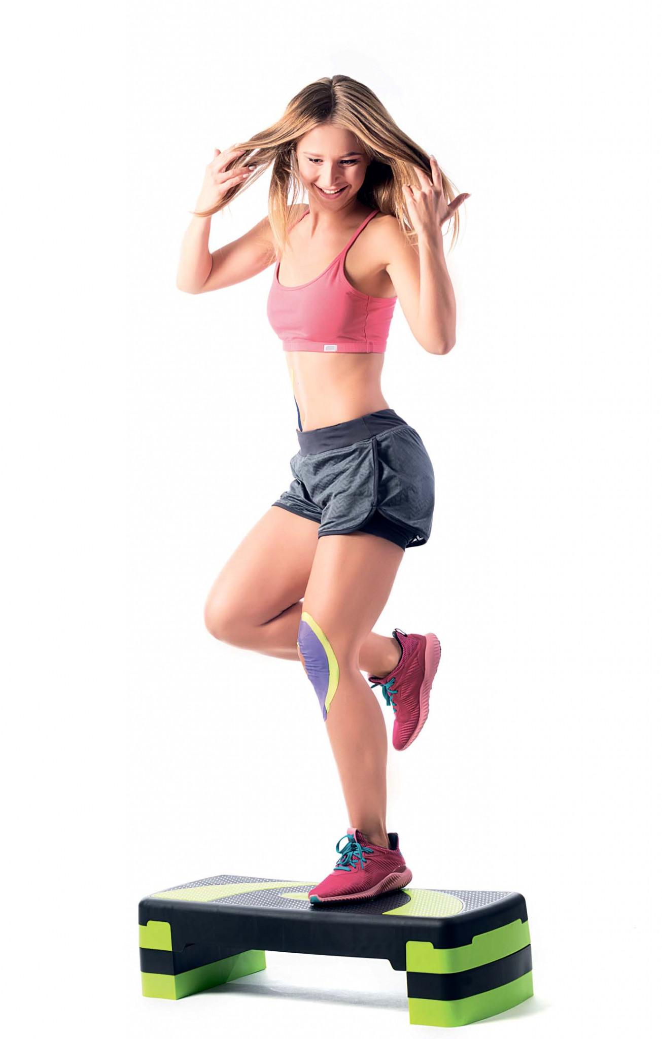 Встань двумя ногами на платформу, руки помести на пояс. Делай прыжки так, чтобы одна нога опускалась на пол, а другая оставалась на платформе. Чередуй ноги. Чем выше прыжки, тем больше эффект.