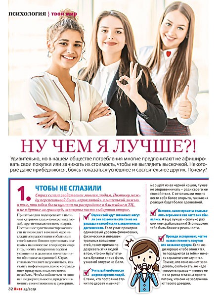 Статья «Ну чем я лучше?!» в №25 – про меня! Думаю, все дело в неуверенности. Например, в начальных классах со мной произошел такой случай. Мы только начали изучать уравнения. И однажды, когда мы в классе самостоятельно решали задачу, я как-то догадалась, что решить ее можно, построив уравнение – а нам такой способ еще не объясняли. Решила – и испугалась! А вдруг так нельзя делать, вдруг меня будут ругать? Сижу – и чуть не плачу. И хотя по-том учительница меня расхвалила перед всем классом за догадливость, вот это чувство, что все, что ты делаешь, неправильно, не достойно внимания, осталось на всю жизнь. Подумаю над вашей статьей еще. Может поможет. Наталья К.