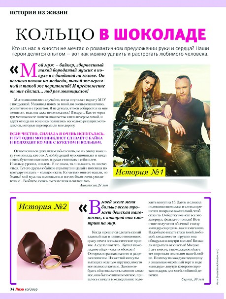 Прочитала у вас истории самых оригинальных предложений выйти замуж. И решила рассказать свою. Это произошло 20 лет назад. За мной ухаживал очень хороший парень, но мне он казался каким-то скучным, слишком правильным. Но однажды я попала в жуткую аварию. Когда пришла в себя в больнице, узнала, что детей у меня, скорее всего, не будет и еще вопрос, смогу ли я ходить. И вот лежу я вся в гипсе с головы до ног и даже плакать не могу – мне казалось, что жизнь кончена. Вдруг в палату входит мой скучный воздыхатель. Бережно целует меня куда-то в бинты на голове, кладет на грудь обручальное кольцо и не просит выйти за него, а говорит строго: «Теперь я буду о тебе заботиться!» Санитарки и медсестры рыдали... Через год мы сыграли свадьбу, а еще через пять случилось чудо – у нас родился сын! Юлия, Нижнекамск