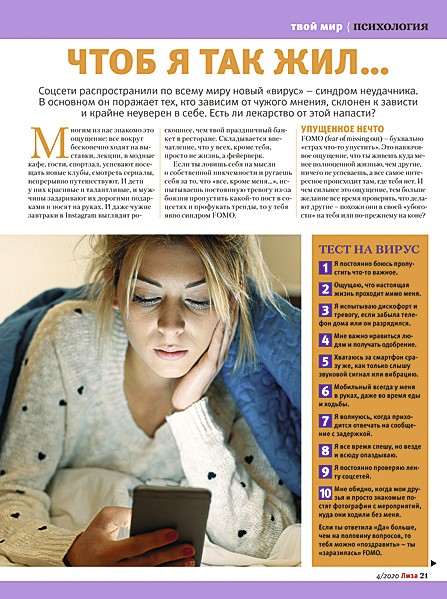 Согласна с автором статьи «Чтоб я так жил...» – очень часто посты в соцсетях заставляют чувствовать себя неудачницей. Читаешь о чужих талантливых детях и интересных отпусках и думаешь: как серо я живу! Но сопоставляем-то мы жизнь одного человека с мозаикой из успехов десятков людей... Конечно, этот вал достижений впечатляет, но такое сравнение неправильно!