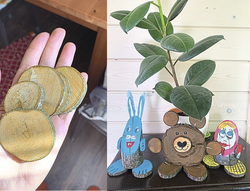 Пока Алена Александрова работает, ее большое семейство делает поделки из деревянных чурбачков. Веселая компания получилась!