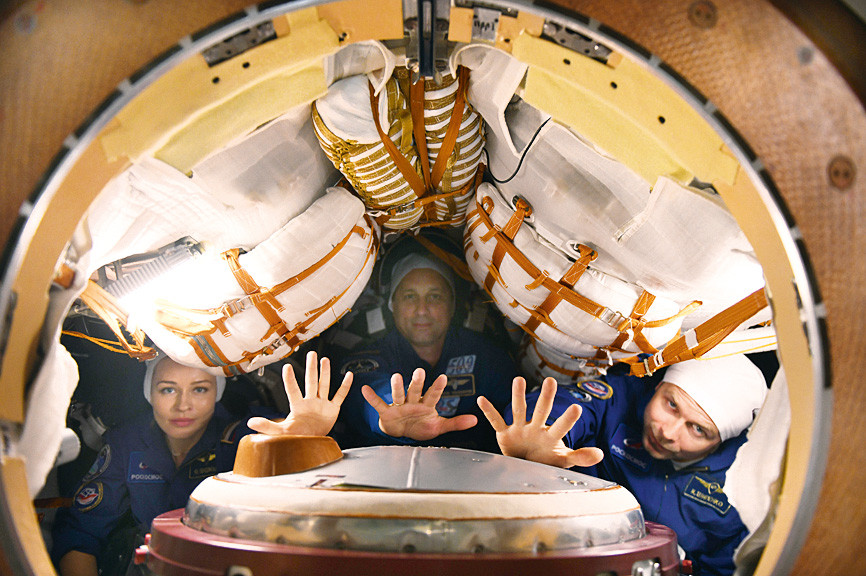 Пока мы готовили этот номер журнала, первый в мире киноэкипаж отправился в космос для съемок фильма «Вызов». А в день выхода «Лизы» актриса Юлия Пересильд, режиссер Клим Шипенко (на фото справа) и космонавт Антон Шкаплеров уже будут готовиться к приземлению, которое запланировано на 17 октября. В космосе команде надлежало отснять около 35 минут фильма. По сюжету совместного проекта Первого канала и Роскосмоса героине Пересильд, врачу-кардиохирургу, необходимо в условиях невесомости провести операцию на сердце космонавту и тем самым спасти ему жизнь.