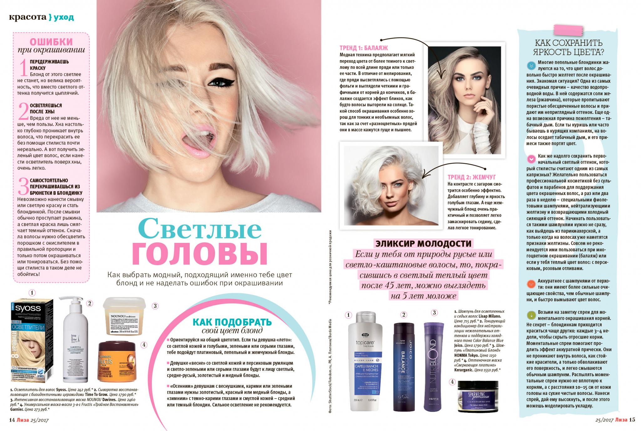 «Здравствуй, «Лиза»! У меня вопрос. Этим летом я хочу стать яркой блондинкой. Но не пошлой и вульгарной с желтым или пережженным цветом волос, хочется что-то благородное... Как не ошибиться с оттенком волос, что необходимо учитывать в макияже? Вот смотришь иной раз на таких женщин, ну такие куколки, такие хорошенькие. И вроде помада не яркая, тени не черные, но эти женщины бросаются в глаза. Какие они секреты знают? Я тоже хочу стать такой! Тем более что выхожу из двухгодичного декретного отпуска на работу, а чувствую себя кикиморой болотной))) Спасибо!»