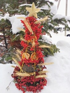 Как только мы узнали о всероссийской акции «Сделано с любовью», захотели поделиться с редакцией и читателями идеей, как оформить кормушку, которая станет отличным украшением зимнего сада. Из проволоки мы сплели шесть вертикальных косичек. Их соединили по кругу с такой же горизонтальной косичкой – получилось дно. По высоте соединили по кругу вертикальные косички, чтобы было удобно положить вкусности – орешки, ягоды черноплодной и красной рябины, ягоды калины, семена подсолнуха, шишки и высушенные кусочки апельсинов, а также колоски с зернышками. Давайте позаботимся о маленьких друзьях вместе! Наталья и Дарья Быстровы, Костромская обл.