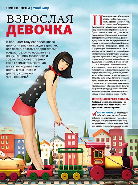 Прочитала статью «Большая девочка», чуть не прослезилась. Почти все примеры – про мою дочь. Ей уже 30 лет, а она все порхает, как бабочка, одевается, как подросток, бегает по клубам. И это при том, что у нее уже есть ребенок! Я обрадовалась, когда узнала о ее беременности, – ей было 28 лет, и я надеялась, что она станет наконец серьезнее. Но она относится к своей маленькой дочке, как к кукле! Ей нравится покупать ей одежду, наряжать ее и выкладывать фото в «Инстаграм (соцсеть признана в РФ экстремистской и запрещена)». Но если ребенка нужно, например, показать врачу, этим занимаюсь я. Недавно дочь услышала, как мы с мужем планируем отпуск, и заявила: «Про внучку-то не забывайте!» Что не так с этим поколением? А. М., г. Москва