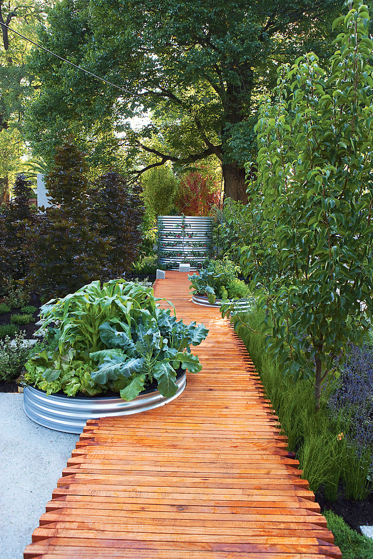 Рельеф. Если на садовом участке есть значительные перепады высот, тропинки должны быть извилистыми или зигзагообразными – так по ним будет легче ходить. Если уклон рельефа слишком крутой, лучше сделать лестницу, и при этом предусмотреть широкие ступени или удобный пандус, чтобы можно было безопасно перевозить любую садовую технику.