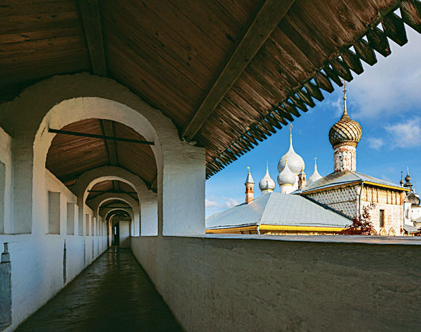 Особое место занимают Архиерейские палаты. Это целый комплекс весьма внушительного вида. И среди всей этой белокаменной роскоши гораздо скромнее смотрится Никольская церковь XVII века. Дело в том, что она деревянная, то есть не в стиле всего ансамбля, хотя и вписывается в него весьма органично. Эта красавица без единого гвоздя – родом из села Глотово. В 1961 году сей замечательный памятник архитектуры для его наилучшей сохранности перенесли в суздальский Кремль.