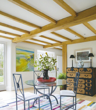 Они могут быть натуральными, из настоящего дерева, или искусственными легкими имитациями из полиуретана. Балки хорошо дополнят интерьер, оформленный в простом и уютном стиле: скандинавском, кантри, прованс, эко. Такое решение создаст в квартире живую теплую атмосферу. А в загородном доме станет логичным продолжением природной темы. Можно окрасить балки в контрастный к основному цвету потолка оттенок.