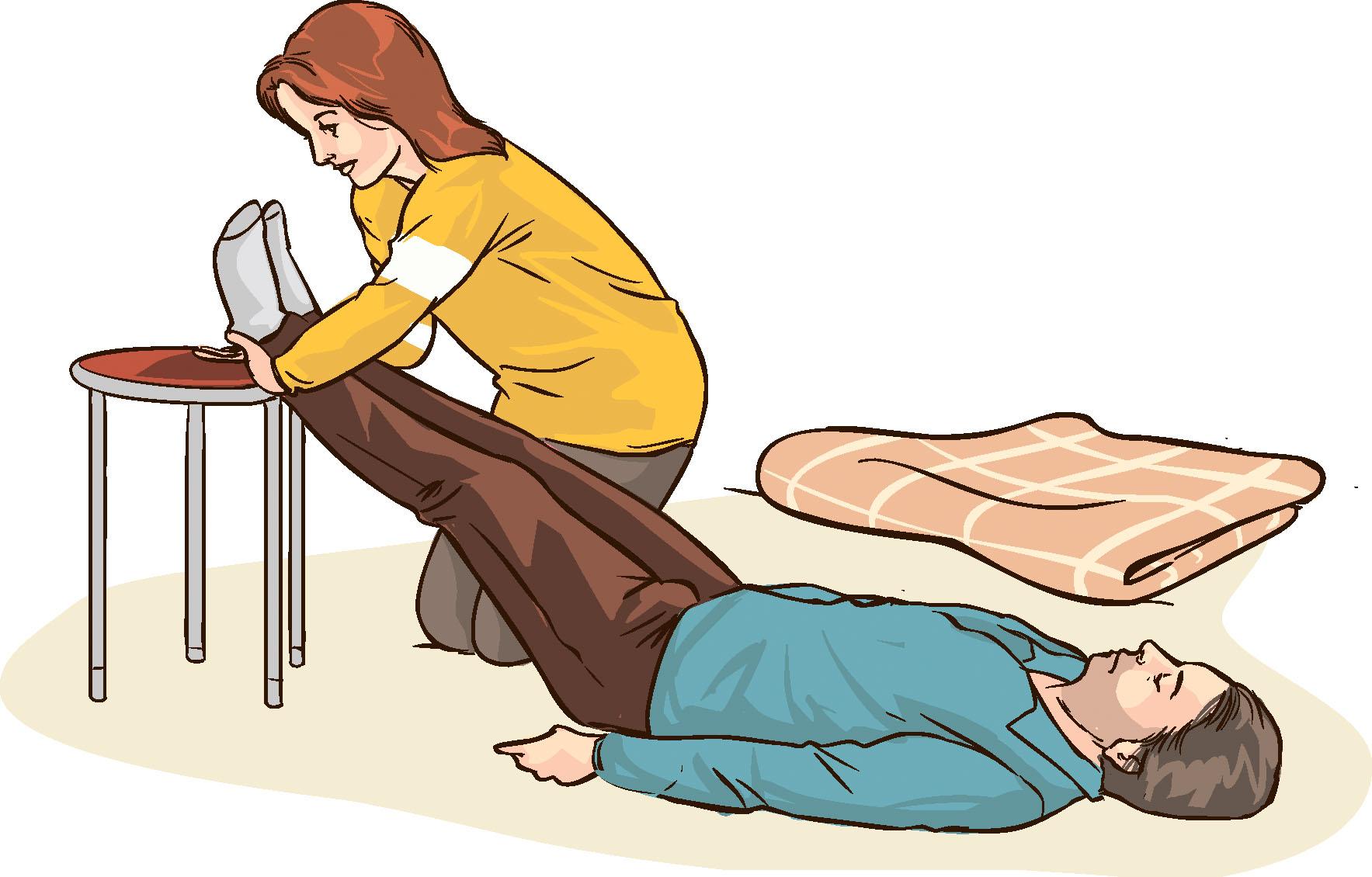 При значительной кровопотере уложи пострадавшего с приподнятыми ногами.
