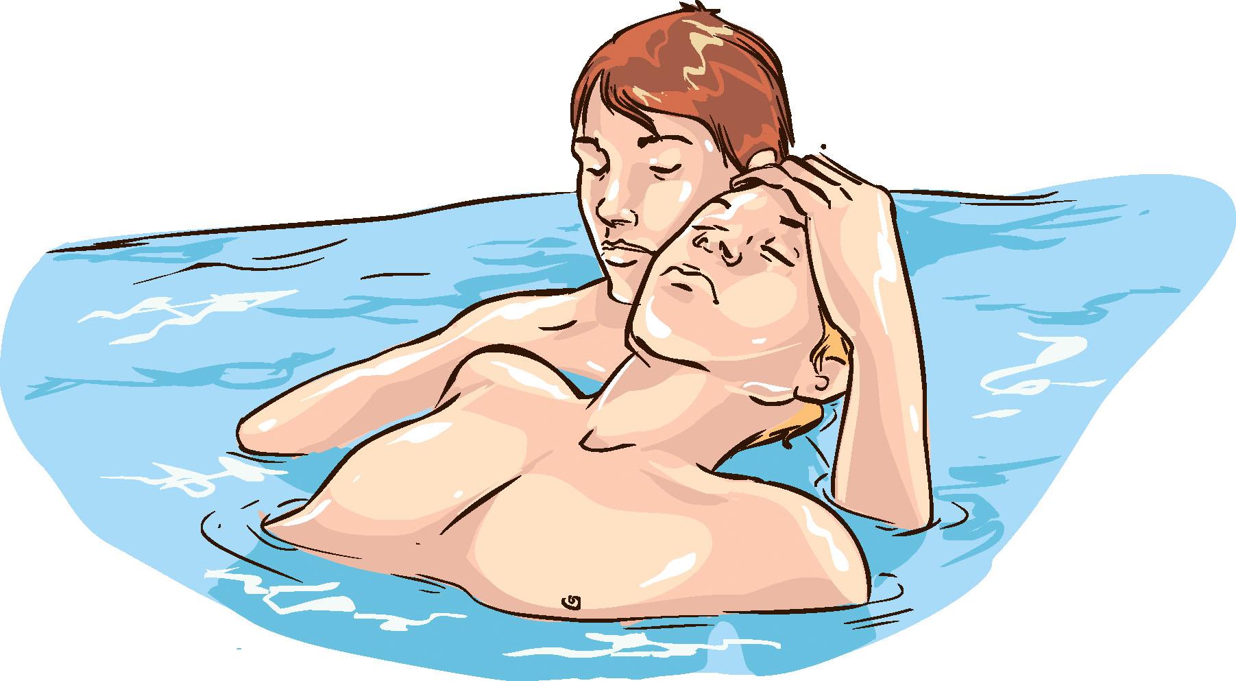 1. Извлеки пострадавшего из воды. Подплывай к нему сзади, держи за волосы или подмышки и следи, чтобы его лицо было над поверхностью воды.