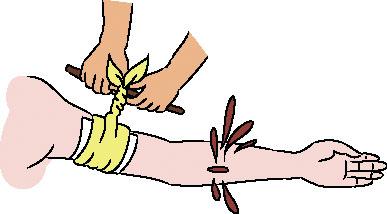 5. Вложи под жгут записку с указанием времени его наложения. Или на лбу пострадавшего напиши «Жгут».
