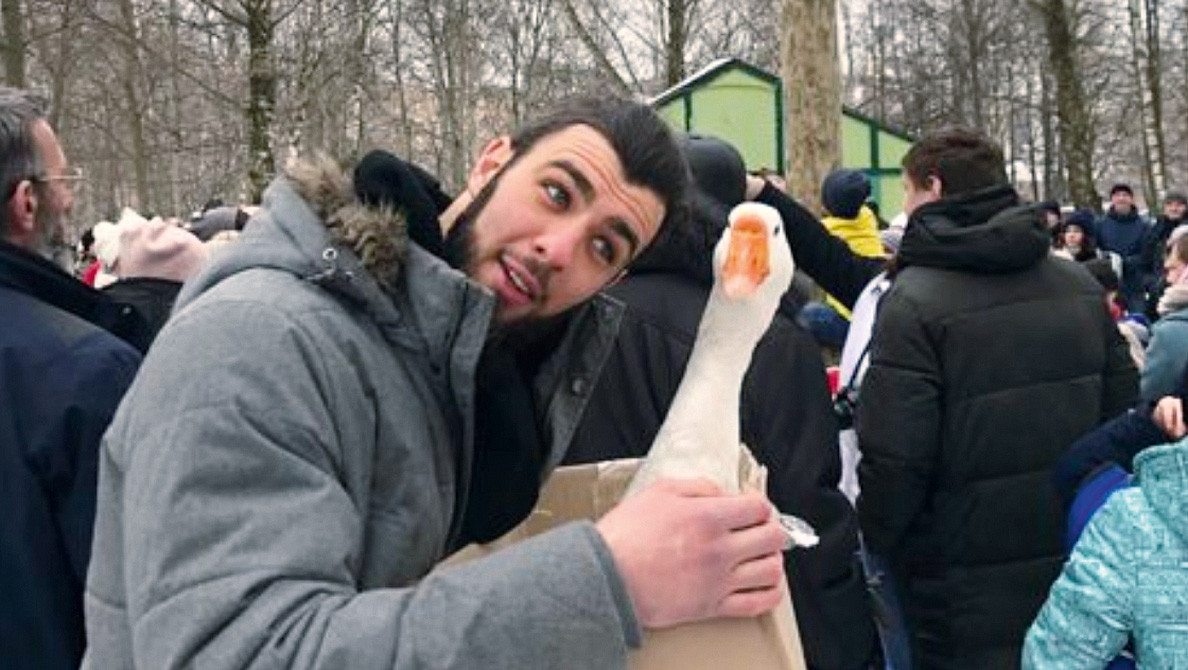 Покорно сидевший среди фенов и мультиварок гусь был в числе трофеев для победителей соревнований, которые проводились на Масленицу в подмосковном городе Долгопрудном. Одна из местных жительниц Евгения Бушуева, ужаснувшись увиденному и решив, что живой лот надо во что бы то ни стало спасти, отправила своего племянника, рэгбиста Михаила Косарыгина прямиком на 6-метровый масленичный столб. И – о, чудо! – Михаил не только первым влез наверх, но и вытянул «привязанный» к птице номер.