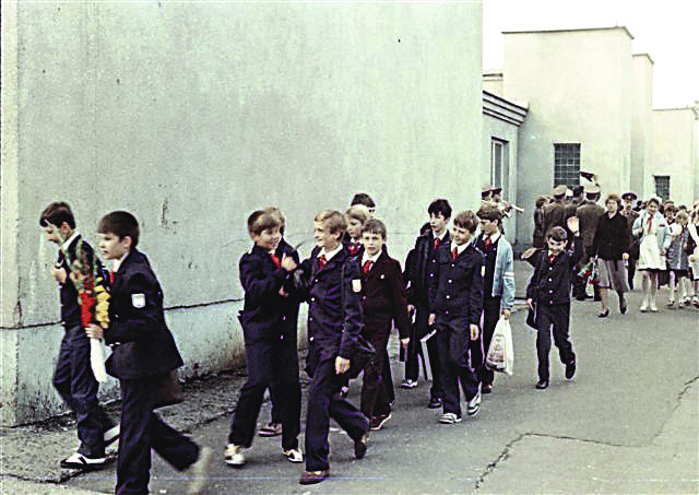 А вот форма для мальчиков менялась довольно регулярно. В 1962 году гимнастерку сменили стандартные серые шерстяные костюмы. Потом появилась синяя форма – брюки и спортивного фасона куртка. На рукаве красовалась нашивка, изображающая раскрытую книгу и солнце («Ученье – свет»).