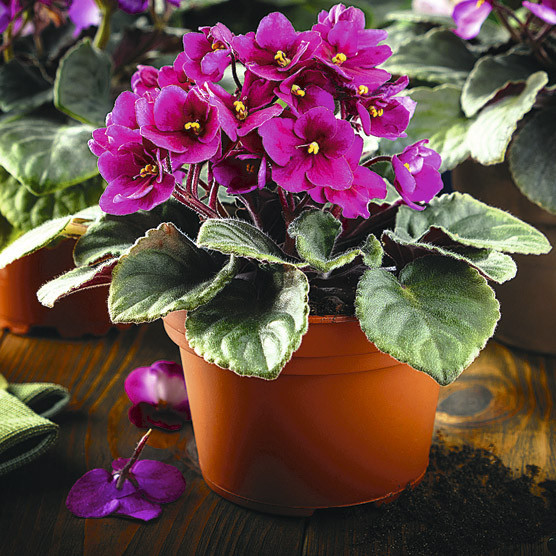 Сенполия. Фиалка не случайно так популярна. Она не ядовита и не требует особого ухода. Ее цветочки радуют глаз, а шершавые листики покрывает мягкий пушок – приятный наощупь. Разнообразие сортов позволит выбрать цвет фиалок по вкусу и придать детской нежный колорит.