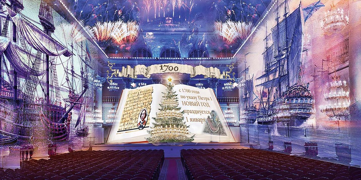 Гаснет свет, звучат первые аккорды музыки, и потолок Колонного зала превращается в огромный проекционный экран. Полное погружение в рассказ о традициях празднования Нового года. Зрители побывают на рождественской ярмарке XIX века, попадут на маскарадную феерию времен Петра I и прокатятся на новогоднем аттракционе советских лет. Но сюрпризы ждут гостей не только в зале. В фойе будет витать аромат мандаринов и елки, а в буфете предложат десерты, сделанные по старинным рецептам лучшими кондитерами Москвы.
