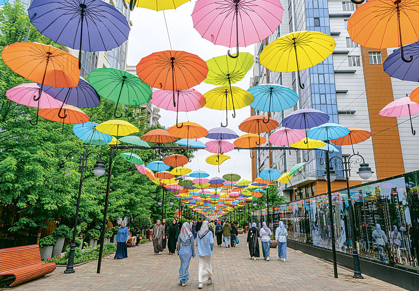 Жители Грозного уделяют большое внимание своему внешнему виду, а местные женщины искусно совмещают желание нарядиться с исламским дресс-кодом: это платок, закрытые руки и никаких брюк.