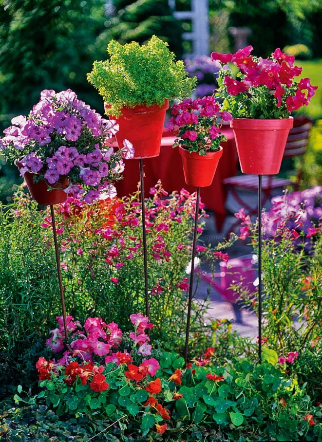 Укроп, петрушка, кинза, руккола – все это и многое другое можно легко вырастить в небольших горшочках. Их можно соорудить в перемешку с обычными комнатными цветами, которые ты на лето вынесла в сад из дома или привезла из своей городской квартиры.