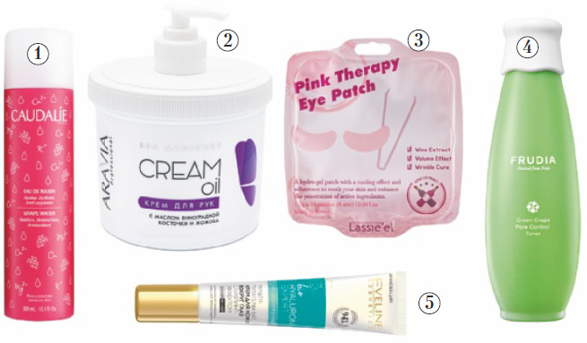 Вот почему его очень часто можно встретить в составе косметики, особенно в антивозрастных средствах: кремах, сыворотках, тканевых масках и патчах для век. Вино содержит ресвератрол – антиоксидант, который стимулирует выработку коллагена и эластина и помогает бороться со старением кожи. А также он эффективен и против фотостарения, вызванного влиянием ультрафиолета. Ресвератрол помогает снизить вред UVA- и UVB-лучей и не допустить появления морщин и пигментации.