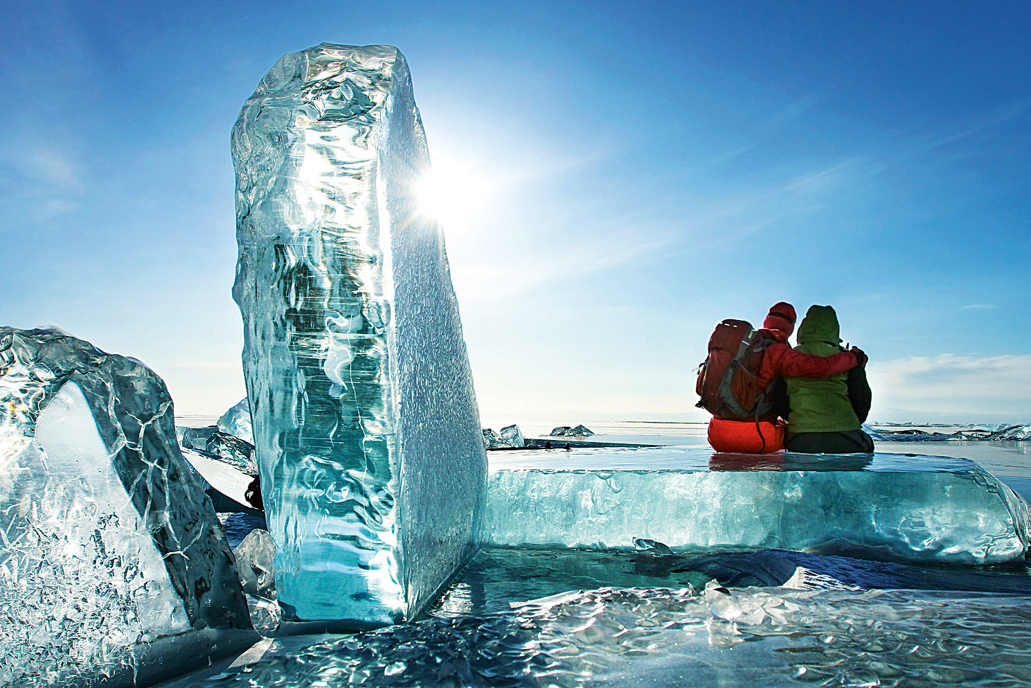 Со всей страны на Байкальское море приезжают туристы, чтоб посмотреть на тот самый знаменитый лед. Он складывается в причудливые пазлы-трещины, образует сверкающие на солнце голубые глыбы, а иногда меняет цвет и становится совсем черным. Стонет, живет и дышит. Порой его треск напоминает протяжный вздох, а иногда он похож на артиллерийскую канонаду. Местные считают, что так Байкал разговаривает. Становится немного не по себе, ведь под ногами 1600-метровая бездна. Снежные сталактиты – звенящие на ветру сосульки – обрамляют в драгоценную раму многочисленные гроты и скалы, облюбованные туристами для фотосессий. На байкальском льду можно увидеть и прекрасных дам в бальных нарядах, и смелых девушек в купальниках, позирующих фотографам. Кадры получаются незабываемые! А многие специально приезжают сюда покататься на коньках, благо погода и прозрачный лед этому способствуют.