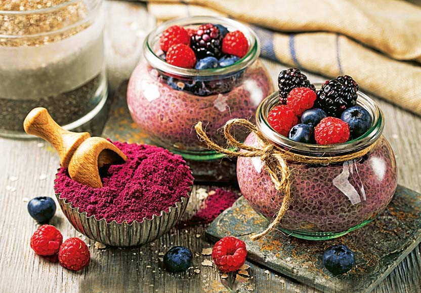 ПРИГОТОВЛЕНИЕ: в миску, изготовленную из толстого стекла, помести ягоды. Туда же влей натуральный йогурт и мед. Взбей эти ингредиенты, применяя погружной блендер. Получившуюся массу аккуратно перелей в стакан или бокал. Добавь семена чиа. Тщательно перемешай чайной ложечкой. Бокал вместе с содержимым отправь на среднюю полку холодильника. Десерт должен охлаждаться минимум 4 часа. Идеально, если он простоит в холодильнике до утра. Затем достань из холодильника нежно-розовый чиа-пудинг. Укрась его целыми ягодами малины, черники или ежевики. Вкусный завтрак готов!