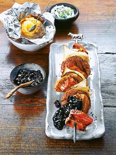 Ужин: Шашлычки с беконом под соусом из ежевики