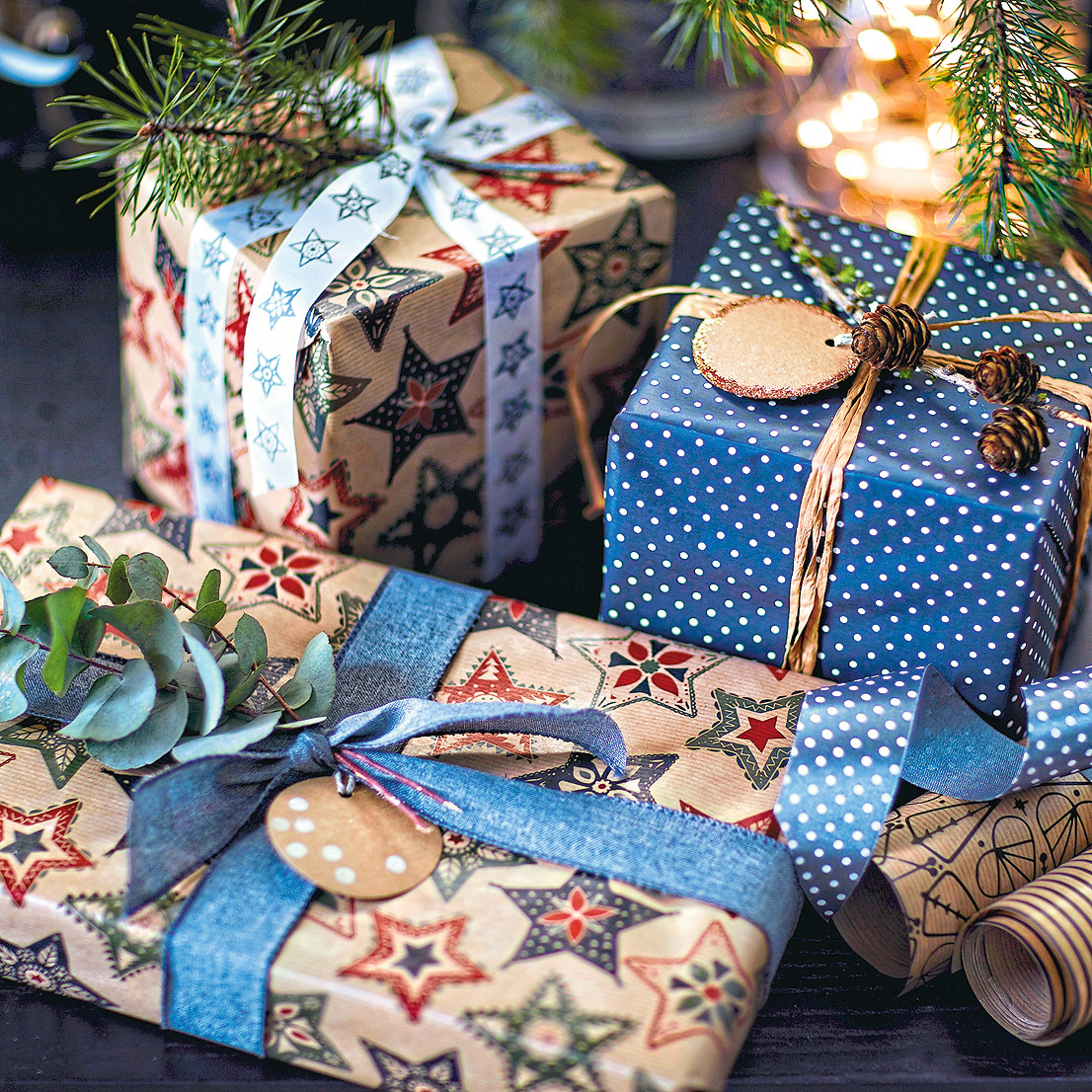Одна из стратегий – оформить все новогодние подарки в одном ключе. Используй схожие по стилю или цветовой гамме упаковочные материалы (оберточную бумагу, ленты, мишуру).