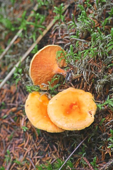 Говорушки оранжевые. Их еще называют «ложными лисичками». У таких грибов аккуратная, похожая на воронку, шляпка с ровными краями. Если ее надломить, выделяется белый сок. Говорушка оранжевая – условно съедобный гриб. В принципе, при правильной термической обработке и определенном способе приготовления ничего не будет. Но если приготовить их, как лисички, можно заработать отравление.