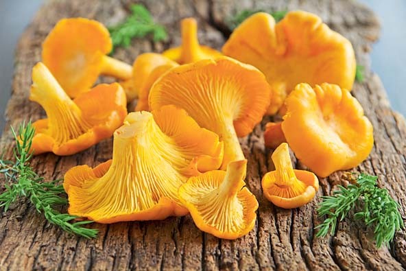 Съедобные лисички. У них светло-желтая шляпка, как правило, неровная, «рваная» по краям и толстая ножка, плавно переходящая в шляпку. У настоящих лисичек обычно спокойный рыжий окрас – не такой насыщенный и яркий, как у их ложного двойника – говорушки оранжевой.
