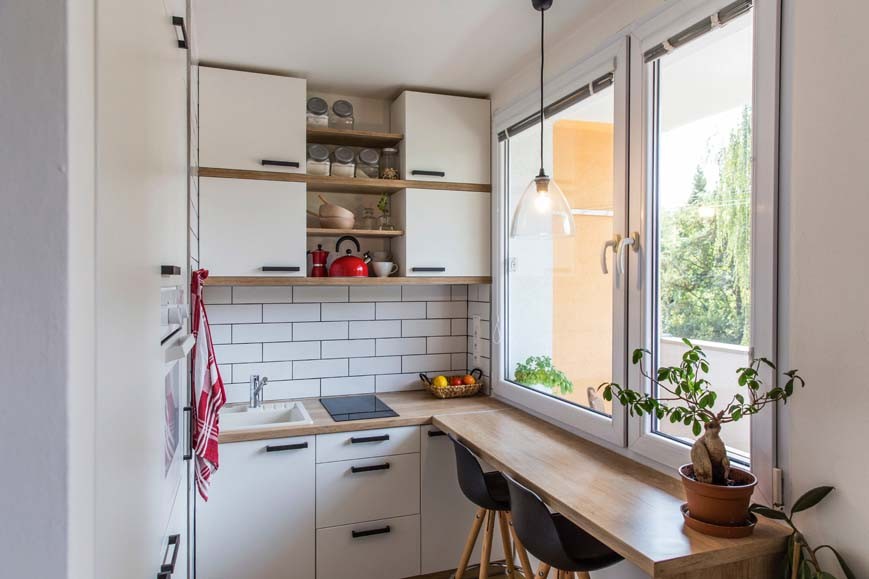 - Присоединение. Оформи разрешение в БТИ и объедини лоджию с кухней или комнатой.