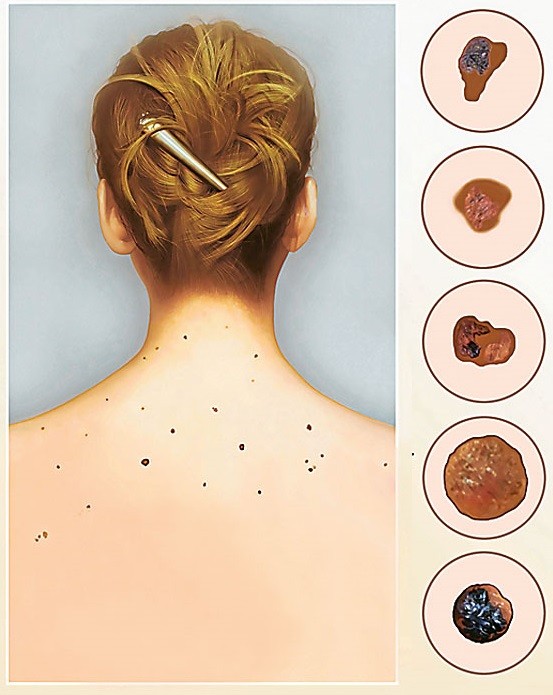 От одной царапины ничего страшного не случится, поэтому бежать к онкологу не обязательно. Но вот постоянное травмирование опасно! Оно провоцирует перерождение родинок в злокачественные образования примерно в половине случаев. Это может произойти, если, например, воротничок постоянно натирает родинку на шее. Такую родинку нужно удалить. То же самое относится к родинкам, расположенным в других зонах риска – под волосами, на поясе, в паху, под мышками, под бретельками бюстгальтера, на запястьях под манжетами и на стопах.
