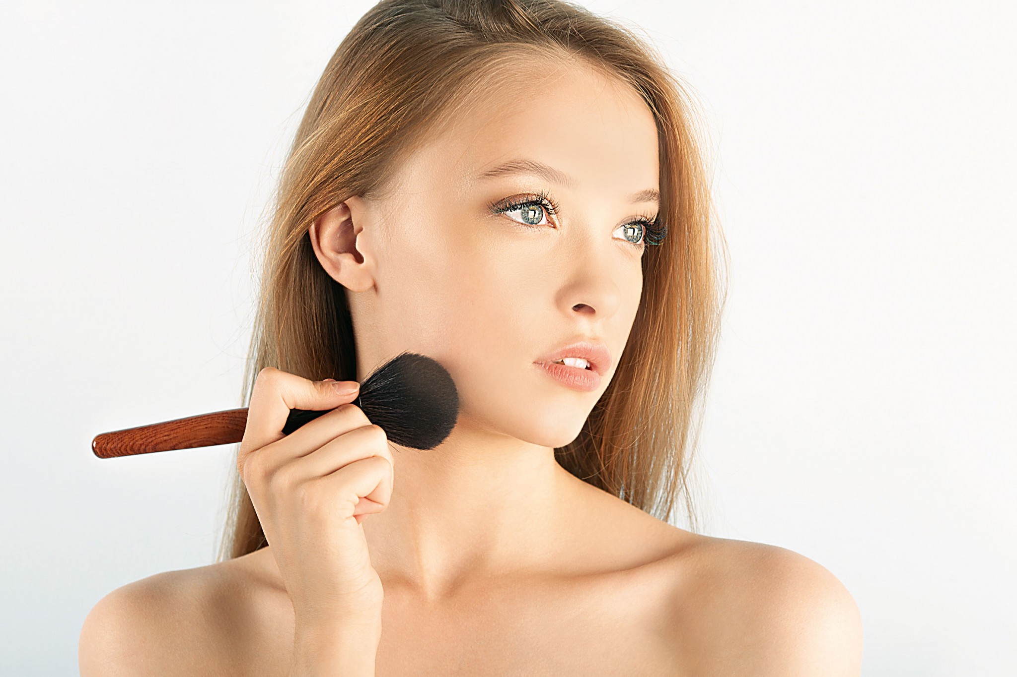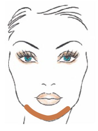 Набери широкой кистью бронзовую пудру, стряхни излишки и тонким слоем растушуй ее по подбородку. Сверху на лицо нанеси пудру, по тону близкую к твоему цвету кожи.