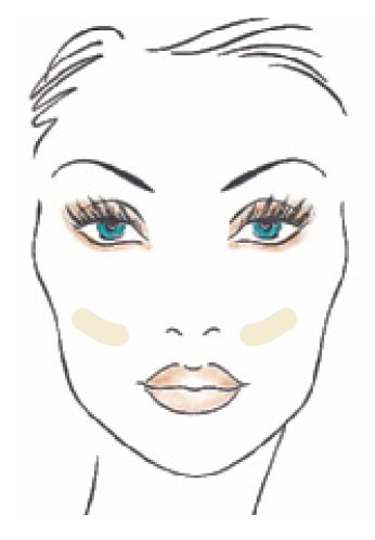 Втяни щеки и на впадину под скулой нанеси пудрухайлайтер. Если хочешь, чтобы скулы казались более высокими и четко очерченными, их верхнюю границу (косточку) выдели бронзовой пудрой.