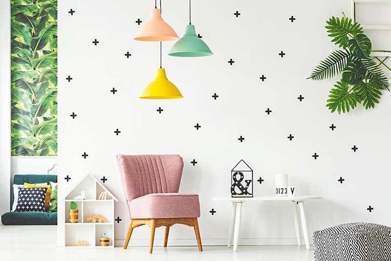Если у тебя нет возможности сделать косметический ремонт, перекрасить стены или сменить обои, можно пойти менее радикальным путем и купить специальные стикеры. Они выглядят как обычные наклейки, только крепятся более надежно и не отклеиваются. Но самое удобное то, что их можно легко снять, не повредив при этом стену. Стоят они недорого, а вариантов множество. Особенно хорошо смотрятся такие наклейки в интерьерах в скандинавском стиле. Разнообразные листики, деревья, цветы, бабочки, птички – мотивы природы создадут в твоей квартире атмосферу радости и позитива.